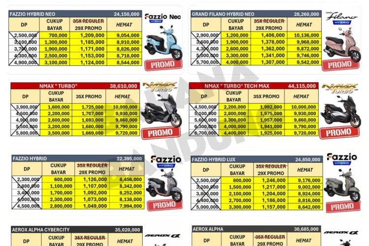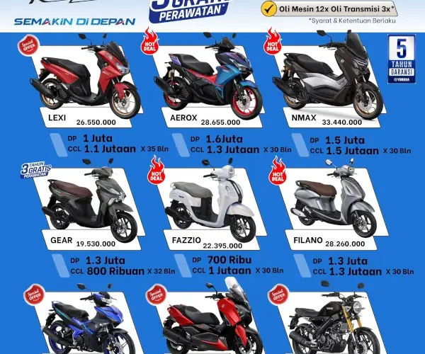 Harga mulai 17 Jutaan* DP mulai 800 Ribuan* Angsuran mulai 900 Ribuan* Free hingga 3X Angsuran* (*Syarat & Ketentuan Berlaku) INFO & KONSULTASI : Yamaha […]